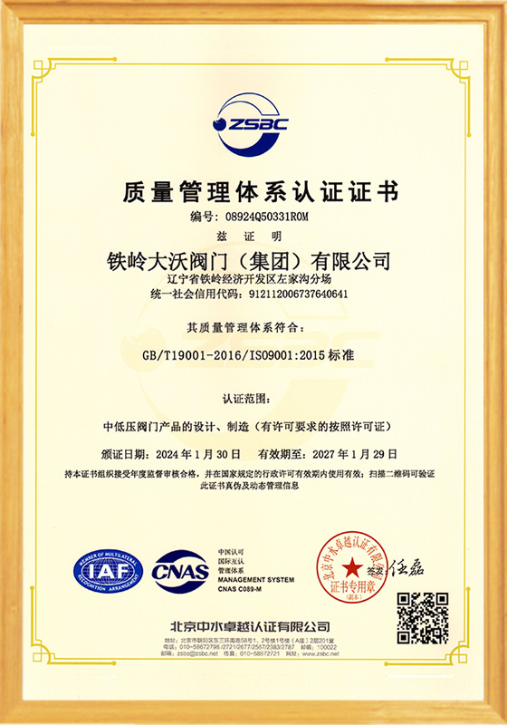 鐵嶺大沃閥門(集團(tuán))有限公司,是原鐵嶺閥門廠改制后,以原國有企業(yè)各領(lǐng)域的骨干精英為核心所組建的創(chuàng)新型企業(yè)。公司在傳承老“鐵閥”所積淀的“管理嚴(yán)格、質(zhì)量第一”精神的同時,將“以客戶為中心,市場為導(dǎo)向,科技創(chuàng)新為支撐”作為發(fā)展理念;將“修為礪器,誠信匠心”作為核心價值觀。在近十年的發(fā)展歷程中,鐵嶺大沃人通過不懈地探索和創(chuàng)新,逐步形成了獨特的經(jīng)營模式及核心競爭力。成為遼寧省企業(yè)廳命名的省級創(chuàng)新型企業(yè);成為通過ISO 9001質(zhì)量管理體系、ISO14001環(huán)境管理體系和ISO 18001職業(yè)健康安全管理體系認(rèn)證,以及特種設(shè)備制造許可證認(rèn)證......